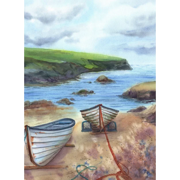 I was inspired by the seaside of the north of Ireland, where every detail is beautiful. These are two old fishing boats in a small harbour in County Donegal.